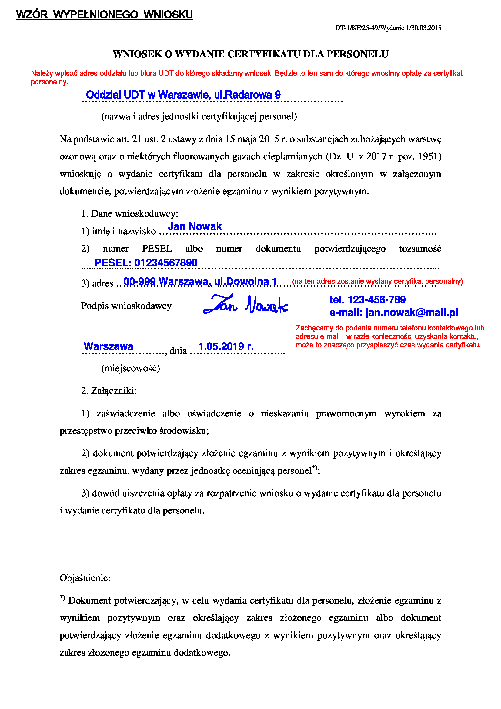 Będąc w posiadaniu dokumentu potwierdzającego zdanie egzaminu możesz wnioskować do Urzędu Dozoru Technicznego o wydanie certyfikatu dla personelu.